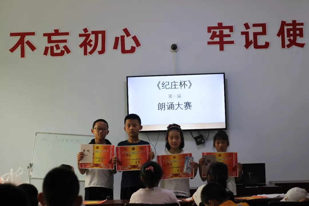 不知不觉,“援手服务队”来到纪庄村已经五天了。7月24日上午,服务队举办了第一届“纪庄杯”朗诵比赛,旨在提升孩子们对语文学习的兴趣以及通过朗诵的形式,加深孩子们对于诗歌所蕴含情感的理解。