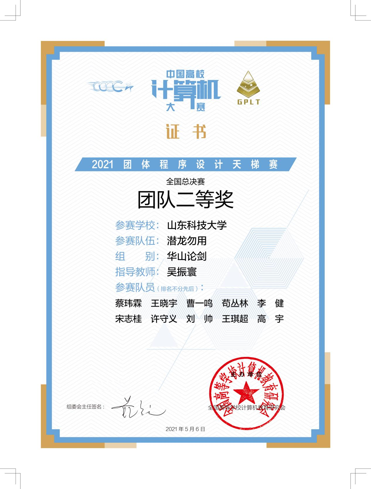 在“华山论剑”组,有252所高校的842支队伍共8420名学生参赛,竞争异常激烈。经过角逐,山东科技大学ACM集训队参赛的三支队伍共30名同学发挥出色,共夺得团体一等奖1项,团体二等奖2项。