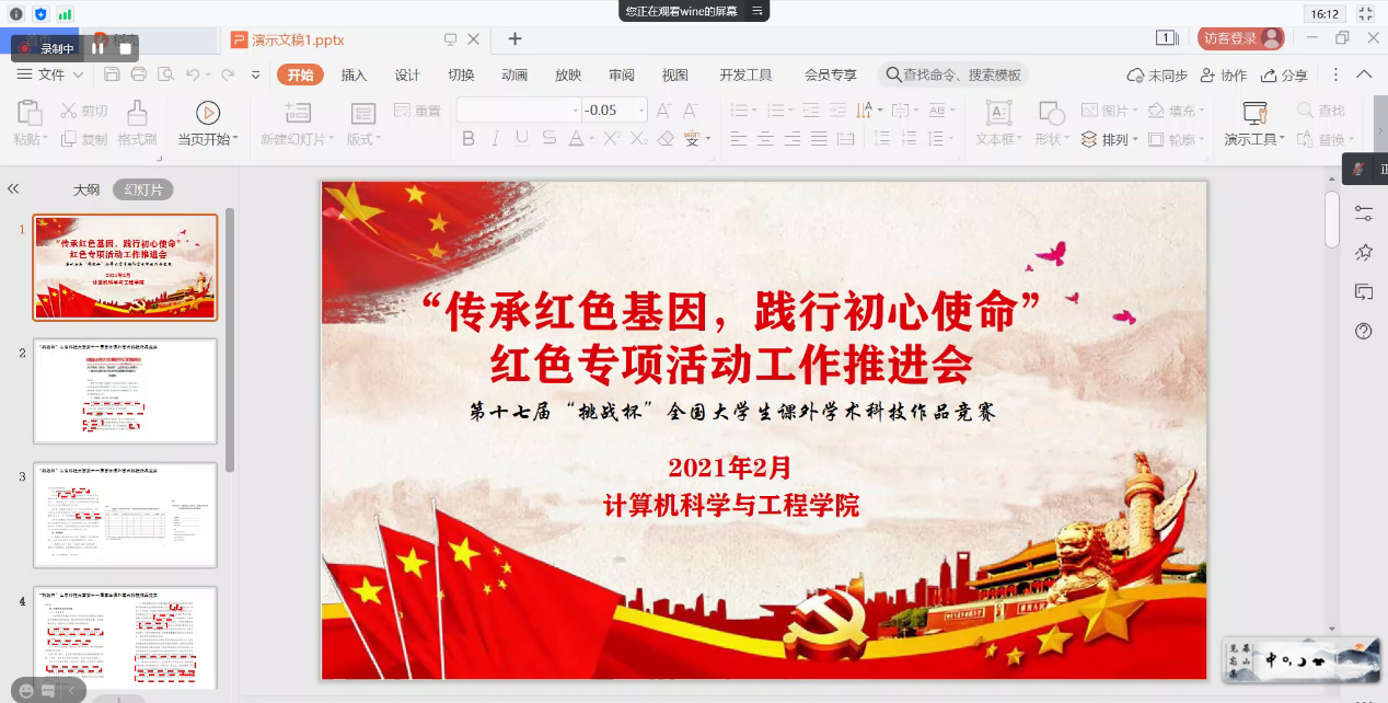 2月25日,计算机科学与工程学院“挑战杯”红色专项活动宣讲暨工作推进会议在腾讯会议平台上举行。周智老师出席并主持会议,科联成员以及各项目组成员参加会议。