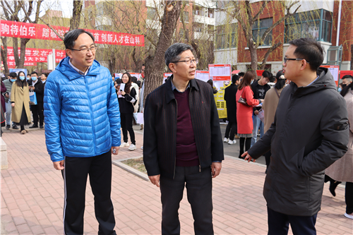 3月20日上午,我院党委书记牟仁刚,党委副书记、副院长郝亮,以及辅导员一行深入2021年春招现场,与用人单位积极开展交流,助力学生就业工作。