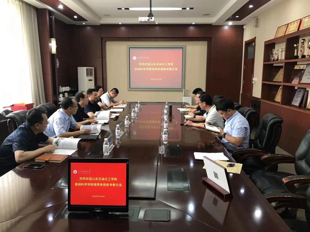 2022年7月19日上午,山东石油化工学院基础科学学院执行院长杨树林一行来到计算机科学与工程学院,考察学院 、本科教学、实验室建设和学生科技创新等方面的经验。