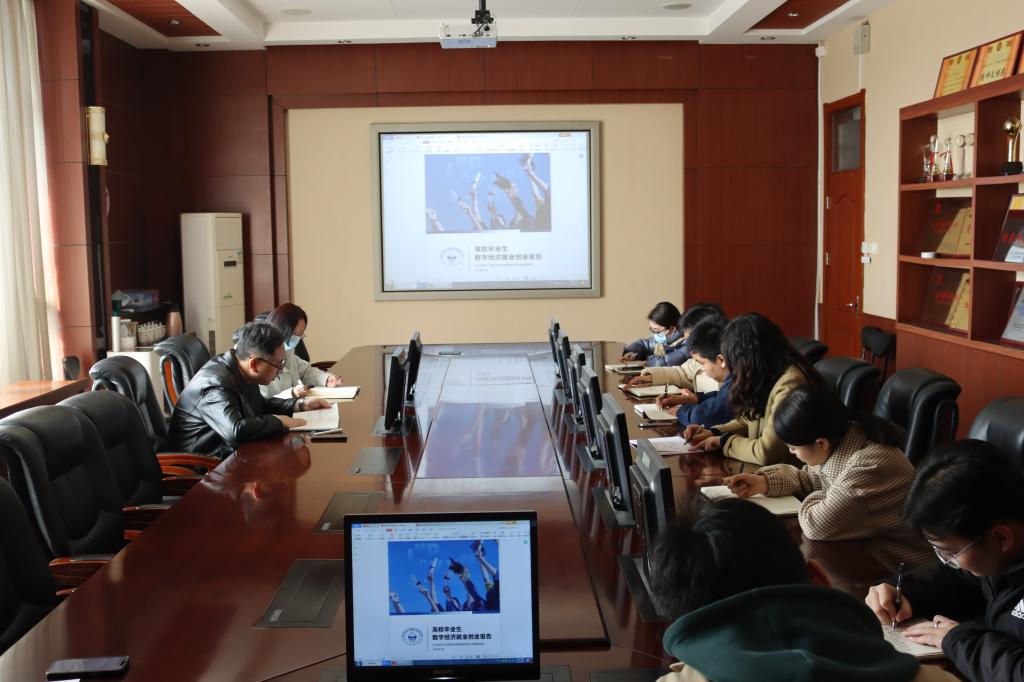 学院党委副书记、副院长郝亮领学了“高校毕业生数字经济就业创业报告”和“2022中国移动互联网年度大报告”两份报告文件,明确当前就业创业形势和行业发展现状,以帮助毕业生充分发挥专业学科优势,促进其充分高质量就业创业。