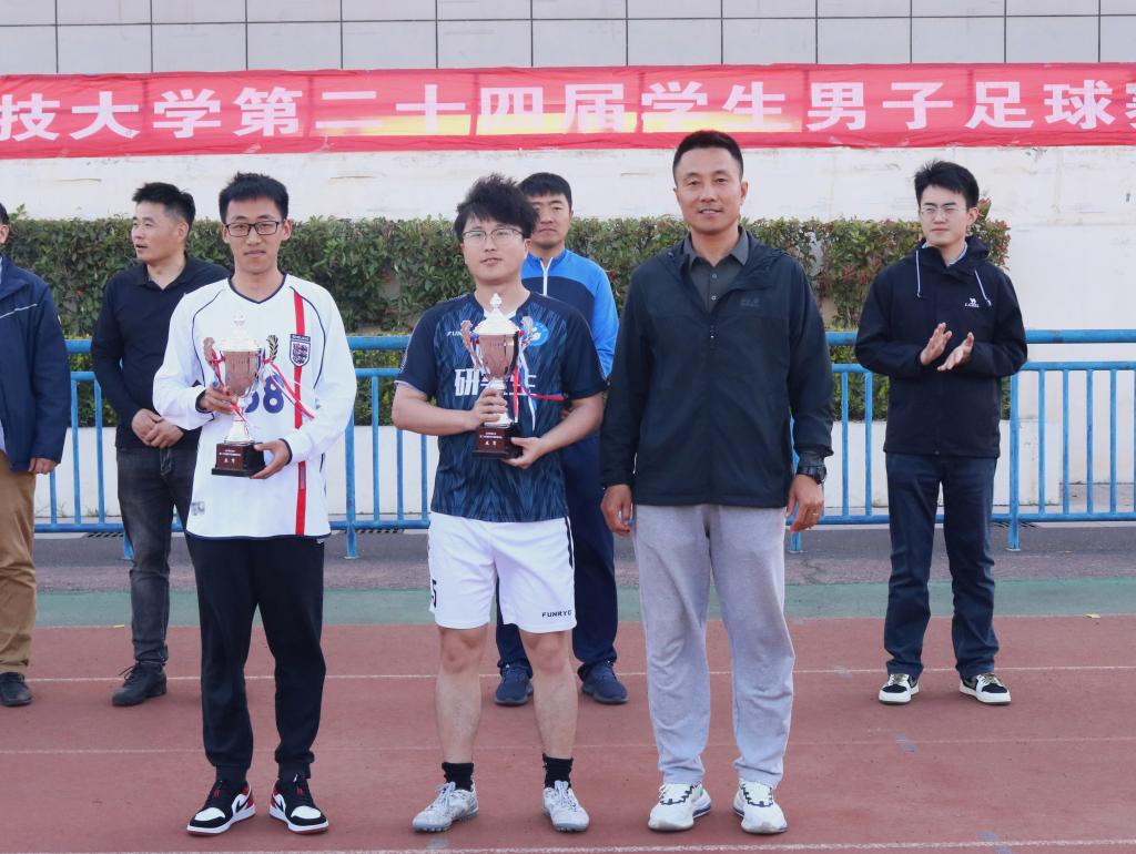为促进大学生全面发展和健康成长,鼓励青年学生磨炼意志、强健体魄,近日,由校团委、校体委主办,计算机学院承办的山东科技大学第二十四届学生男子足球联赛在风雨操场圆满落幕。校团委科创部部长赵仰生,体育学院群体活动部主任时洪举,体育学院老师赵鹏、陈超,计算机学院团委老师乔虎出席闭幕式,为获奖球队和个人颁奖。