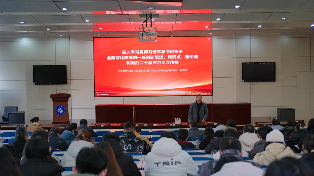 为深入学习贯彻党的二十届三中全会精神,12月10日、17日,计算机学院在蓝光报告厅组织开展学习贯彻党的二十届三中全会精神培训会,培训会由学院党委书记牟仁刚主持,学院全体科级以下干部、党员参加培训学习。