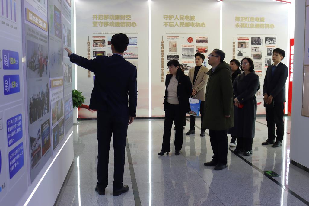 在青岛移动人力资源部经理姜玉洁、工作人员李子赫的陪同下,郝亮一行参观学习了青岛移动党业融合发展实践展厅,了解了党建引领企业高质量发展的建设成效。交流环节,姜玉洁详细介绍了当前企业人才需求情况,双方就实习实训、人才培养等方面展开了深入探讨。