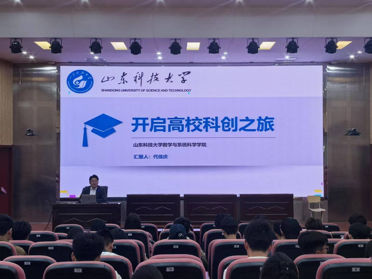 代佳庆主讲科技竞赛,他以“开启高校科创之旅” 为题,阐述了科技创新竞赛的重要战略意义,以及其对大学生创新实践能力培养的重要作用。他详细介绍了各类竞赛的等级认定标准,并对同学们可参与的主要竞赛进行分类讲解,分享了学院近年在各类竞赛中的获奖情况。最后他鼓励同学们要积极参与竞赛,以赛促学,提升自身综合实力。