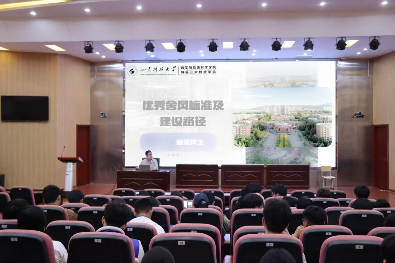 诸葛祥玉主讲“优秀舍风标准及建设路径”,他指出,优秀舍风对自身学业、品德、身心发展具有重要作用,全体学生干部应提高重视、带头建设良好舍风,各宿舍应制定自己的《宿舍公约》,建立量化体系,开展宿舍文化浸润活动,持续改进优化宿舍氛围。