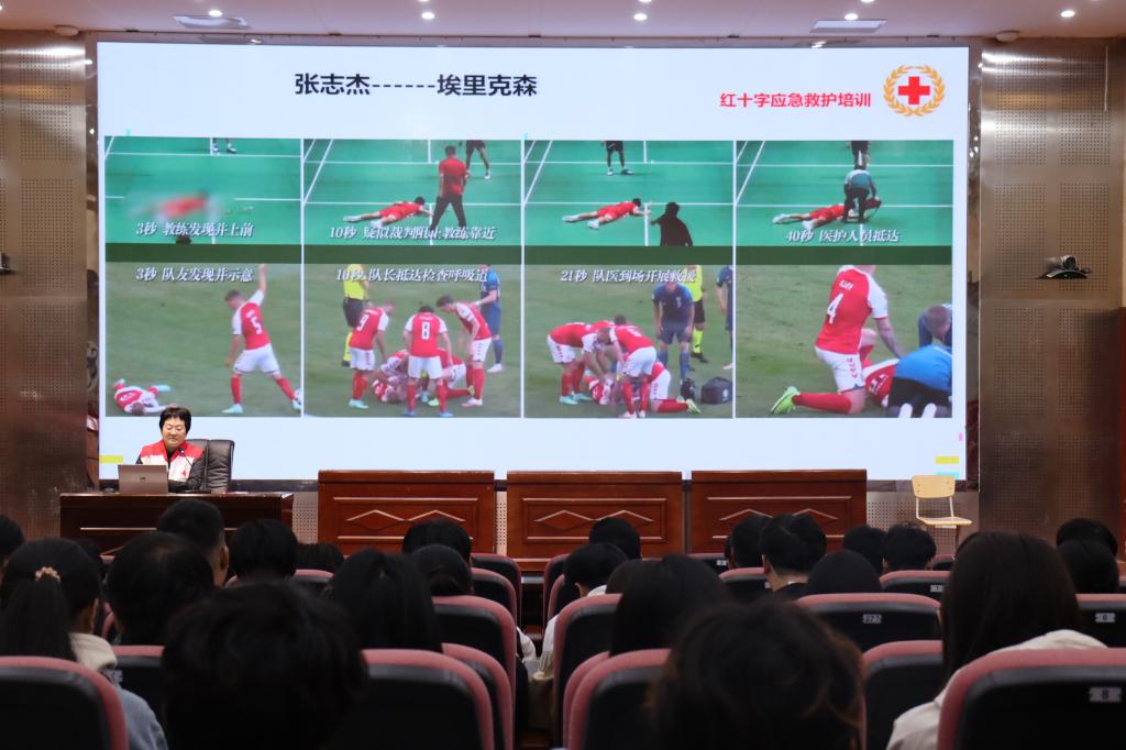 为提升大学生急救能力,普及“人人学急救,急救为人人”的理念,为即将到来的校运动会筑牢安全保障,5月6日下午,数学学院联合青岛大学附属医院与青岛市红十字会举办红十字应急救护培训,邀请青岛大学附属医院副院长魏丽丽为主讲嘉宾,学院拟参加校运动会的运动员、志愿者及“健康有young”社团成员参加此次培训。