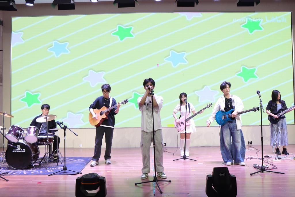 比赛现场星光熠熠,《肆意的河》《你爱我还是他》《至少还有你》等经典歌曲轮番上演,既有深情款款的抒情演绎,也有活力四射的舞台表现。选手们通过独特的嗓音和精湛的演唱技巧,将音乐魅力展现得淋漓尽致。中场环节,舞蹈队带来的现代舞《Pocket locket》以灵动舞姿点燃全场,乐队倾情演绎五月天经典曲目《恋爱ing》,掀起阵阵欢呼。经过激烈角逐,姚道一凭借出色发挥斩获一等奖;王叙然、丁嘉铭荣获二等奖;何佳乐、董正凯、郑家硕获得三等奖。