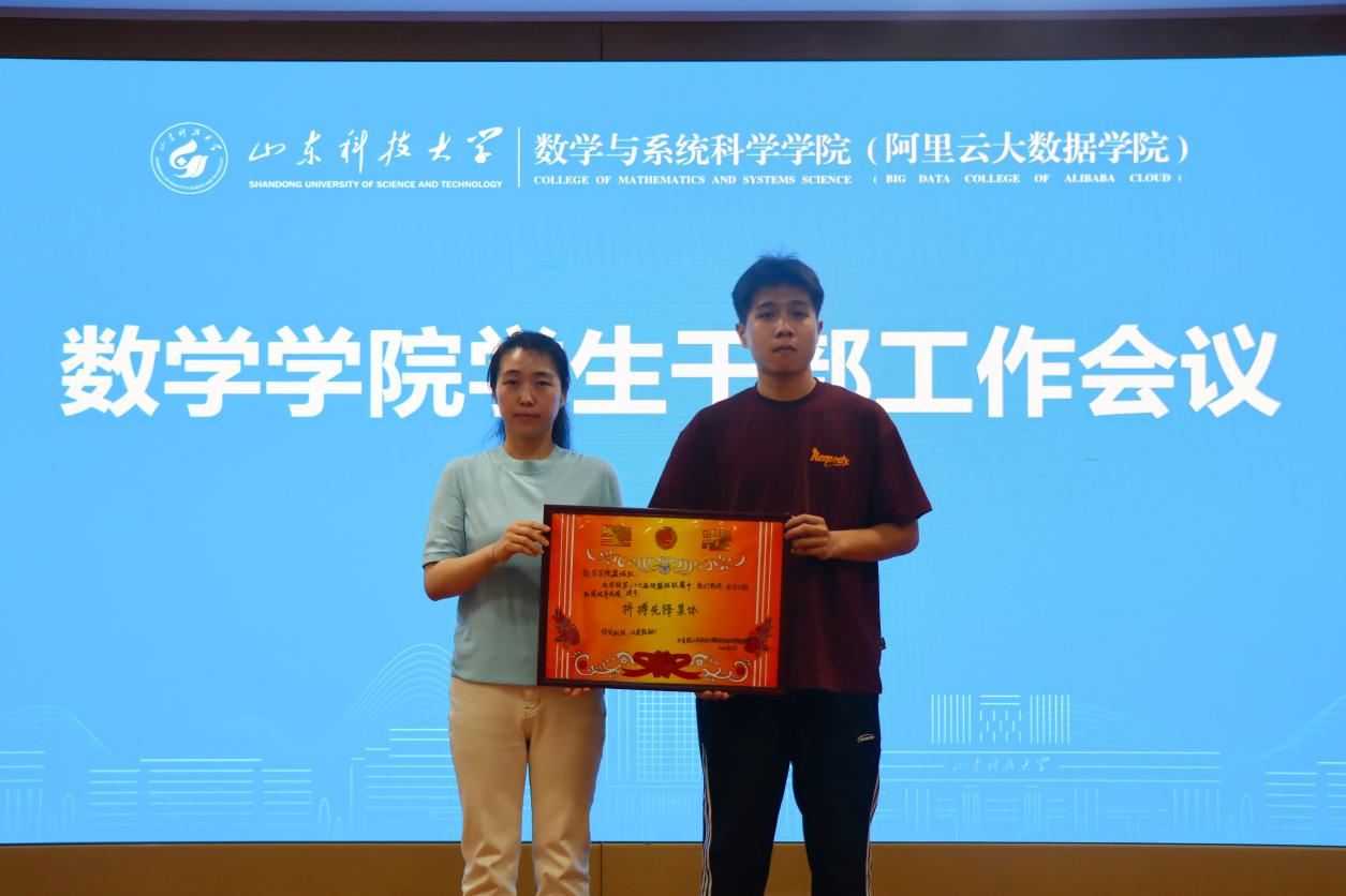 会上,团委书记谢菲菲宣读《关于对数学学院篮球队予以通报表扬的决定》,并为篮球队颁发“拼搏先锋集体”奖状。