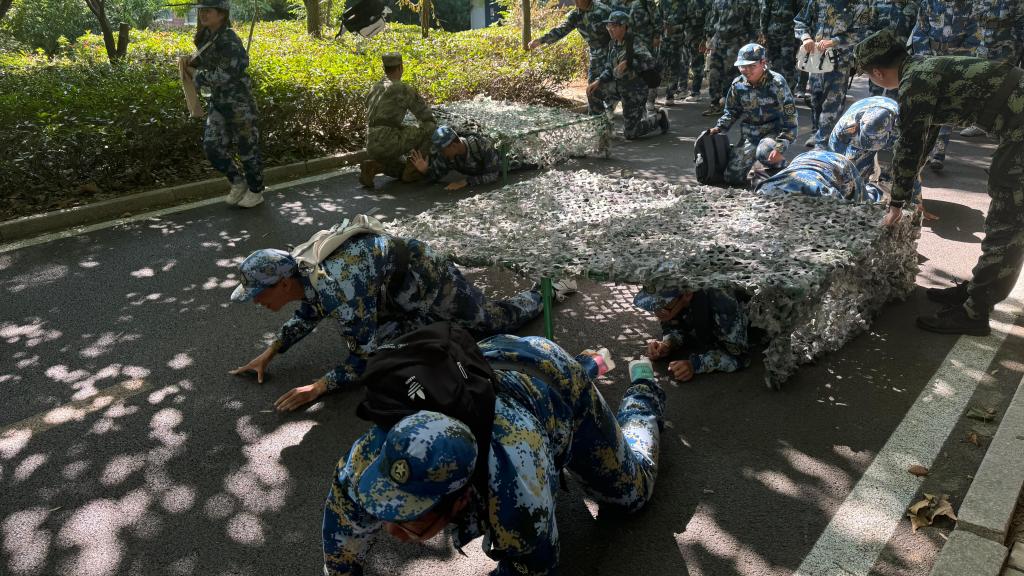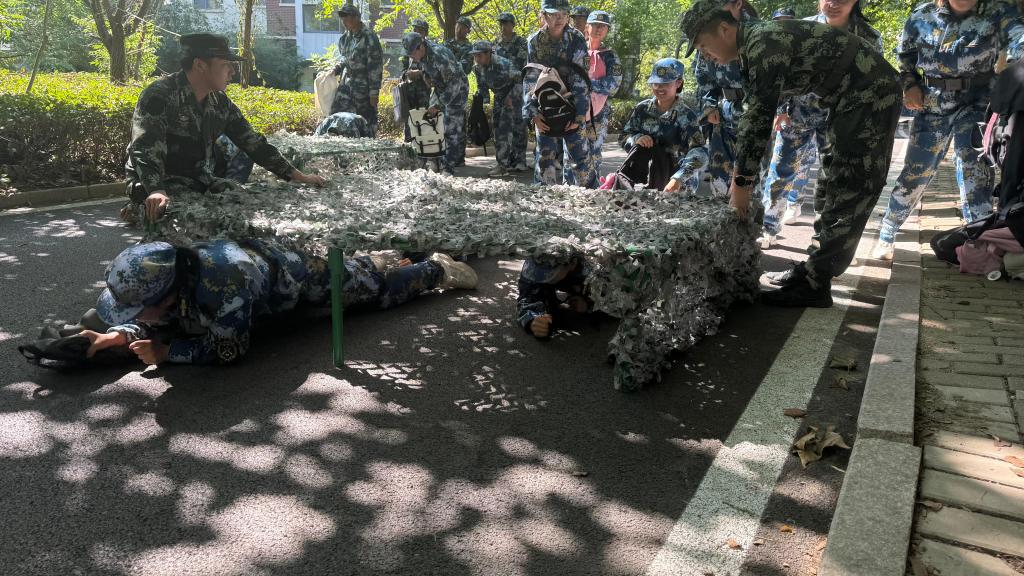 早上7时许,风雨操场起点处,军训服的迷彩交相辉映,同学们的壮志豪情溢于言表。随着校长曾庆田一声令下,队伍如龙出海,势不可当。校园内,林立的树木见证着他们的坚韧与决心。穿越染毒地带,毛巾、防护面罩齐上阵,步伐稳健,眼神坚定,无畏前行;模拟核闪光下,隐蔽迅速,冷静应对,展现了数学学子的智慧与勇气。急行军途中,汗水与泥土交织,喘息与坚持并存。他们并肩作战,相互扶持,用行动诠释了团队的力量。拉练途中,障碍重重,却难挡他们前进的步伐。挑战自我,超越极限。“战旗上写满铁血荣光……”同学们在拉练途中高唱《强军战歌》,书写了属于自己的荣光。