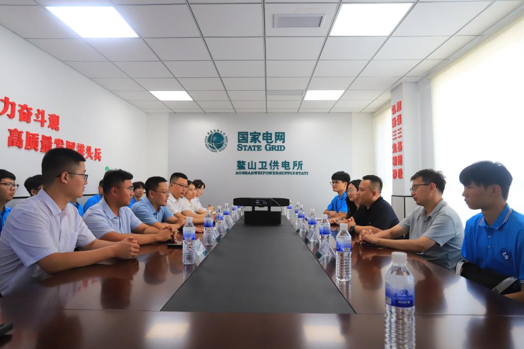 在鳌山卫供电所,实践课堂真正延伸至服务民生的“最后一公里”。师生们与供电所所长、一线班组长及技术骨干围坐一堂,开展深入座谈。从抢修流程的争分夺秒到服务用户的细致入微,从电网设备的精密运维到突发状况的应急响应,基层电力人日复一日的坚守与“人民电业为人民”的朴素情怀深深触动着每一位学子。座谈后,举行了“山东科技大学大学生社会实践基地”揭牌仪式,标志着校地合作、协同育人开启新篇章,为青年学子长期服务基层、融入实践搭建了稳固平台。