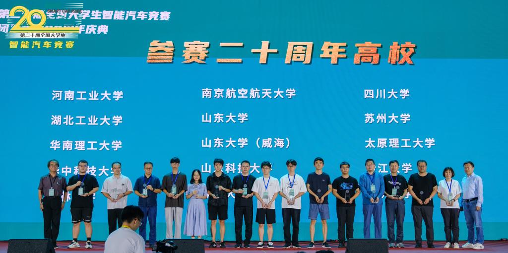 8月18日至20日,第二十届全国大学生智能汽车竞赛总决赛在杭州电子科技大学举办。总决赛共有来自全国9个赛区、294所高校的708支优胜队伍同台竞技。我院刘屹楷、郭轶文、费继冲组成的代表队(指导教师:陈宇、宋诗斌)在智能视觉组别继山东赛区夺冠后,再获全国一等奖!学校获得连续参赛20周年荣誉奖。