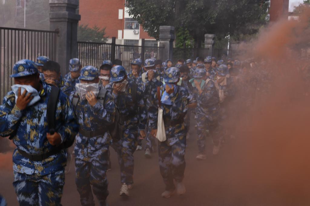 本次拉练路线串联校园多个标志性区域,自田径场出发,经海天路、体育馆、科技园、笔架山、校医院、致远路等地点,最终返回起点,总里程约10公里。为贴近实战场景、强化应急应变能力,途中穿插开展“防辐射隐蔽”“烟雾突围”“障碍跨越”等战术训练课目。在教官细致讲解与规范示范下,新生动作敏捷、配合默契,高标准完成全部训练任务。尽管天气阴沉,全体新生始终热情高涨,无一人退缩,全员顺利抵达终点。