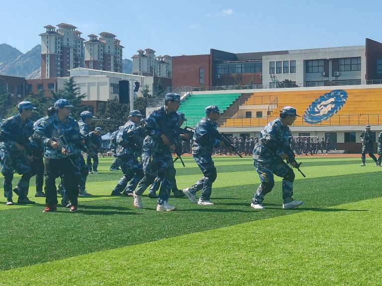 训练伊始,同学们于操场集中开展队列动作与轻武器射击基础训练。从齐步行进与立定,到跑步换齐步、步法转换,同学们动作逐渐精准一致,展现出高度的纪律性与协调性。随后训练向实战化课目拓展,陆续展开战术基础动作、战场救护技能和防化侦察训练。在教官系统讲解与示范下,学员们熟练掌握战术卧倒、战场包扎等实战技能,在模拟战场环境中进一步筑牢国防观念和应急响应能力。