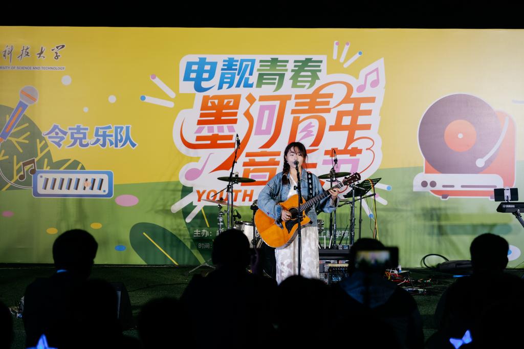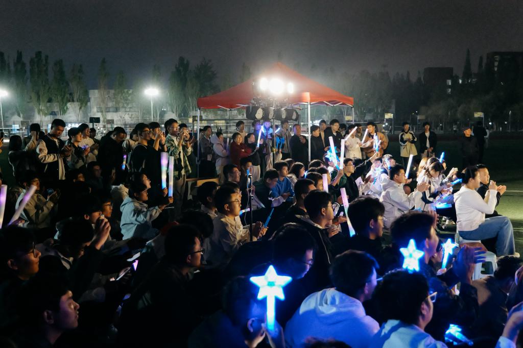 音乐节在浪漫且充满活力的夜色中拉开帷幕。学校2024级学生孙越同学以《姑娘》《蜻蜓》两首深情动人的原创歌曲惊艳开场,清澈的嗓音与真挚的创作瞬间点燃了全场观众的热情。