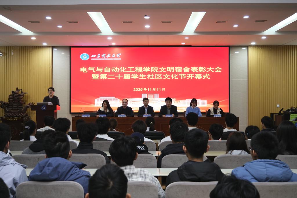 为充分发挥“一站式”学生社区的育人功能,树立宿舍文明建设的先进典型,自动化学院于11月11日成功举办文明宿舍表彰大会暨第二十届学生社区文化节开幕式。学生工作部(处)副部(处)长朱景星、学院党委副书记兼副院长赵洋、学院团委书记杨洪骞及全体辅导员出席活动,文明宿舍获奖成员及2025级学生代表共同参会。
