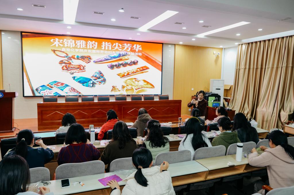 暖春启序,巾帼昂扬。为庆祝“三八”国际劳动妇女节,展现女教职工匠心风采,3月10日,自动化学院举办“宋锦雅韵 指尖芳华”非遗宋锦手工活动,来自学院教学、科研、管理一线的女教职工欢聚一堂,在非遗文化的浸润中度过了一个别具意义的节日时光。