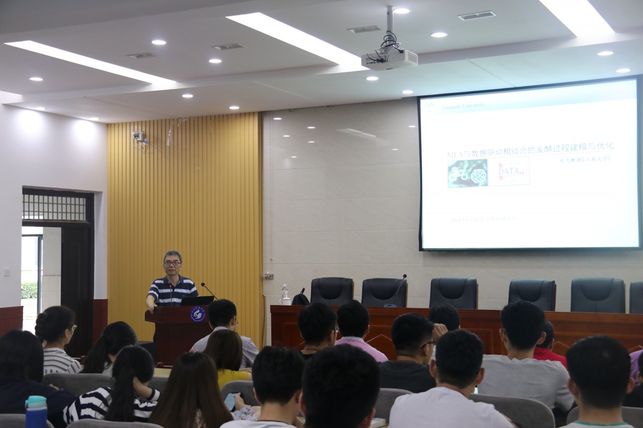 本次报告刘飞教授从发酵过程控制及模型、动态代谢通量分析、代谢通量对操作变量的映射以及基于代谢流的操作优化进行了介绍。随后,刘教授进一步介绍了将代谢通量分析(MFA)与数据驱动的建模技术相结合,来研究发酵过程模型化与优化策略;通过引入动态MFA计算时刻的概念,获得基于时间序列的代谢通量函数,实现代谢通量分布的定量分析;结合数据驱动方法,建立代谢通量分布与发酵操作变量间的映射模型;刘教授最后还介绍了采用多目标优化算法来优化代谢物于不同生长阶段中的代谢要求。