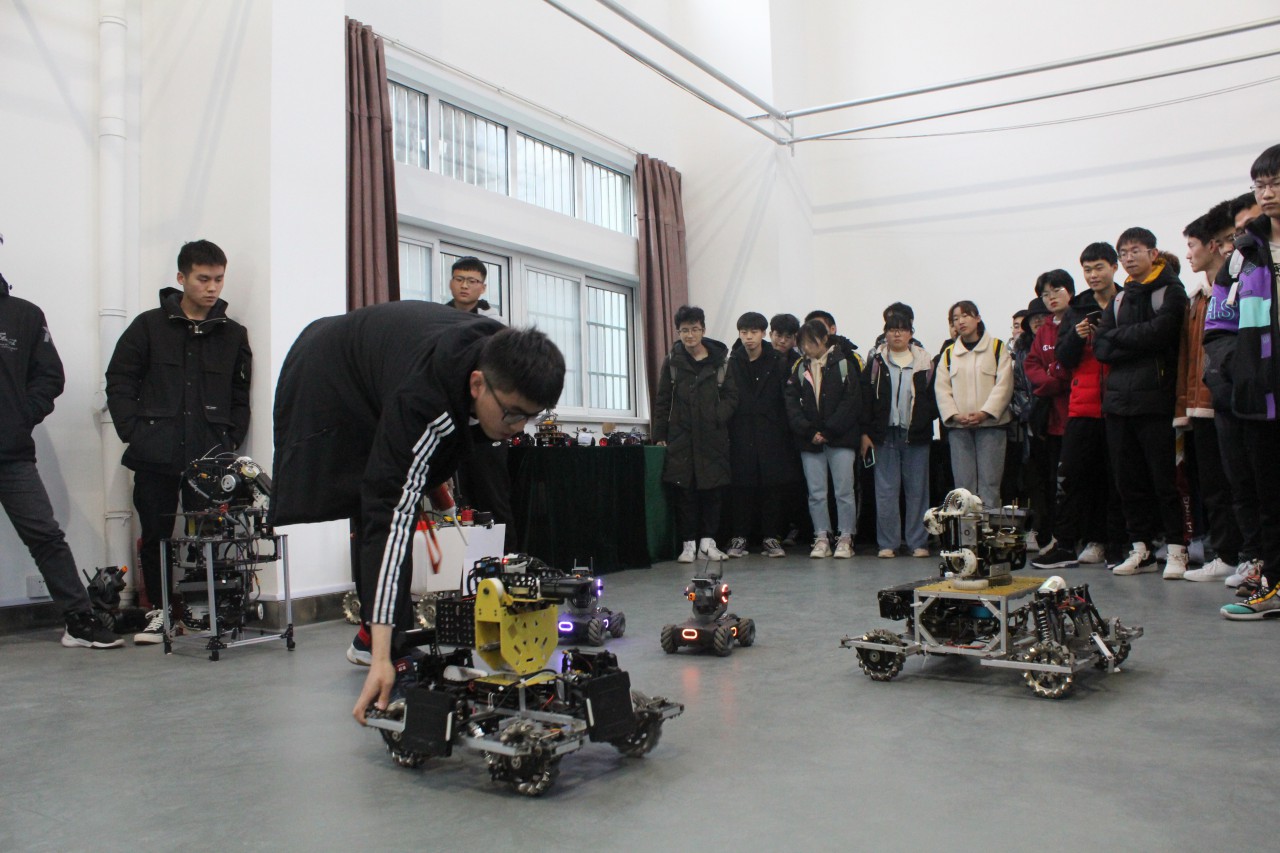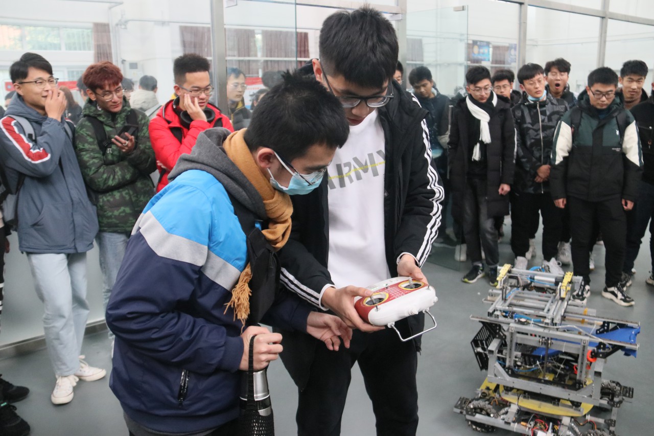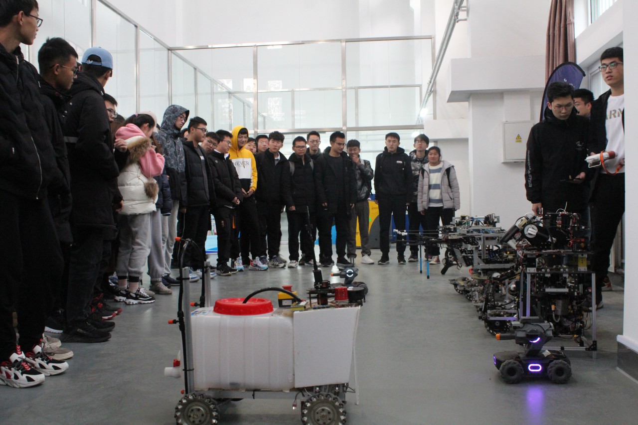 同学们依次参观了青岛智能无人系统创新研究院的户外移动作业机器人、自动分拣机器人,Robot Master战队的机甲战车,学院各年级参加科技创新竞赛研究制作的各类机器人、智能车等优秀作品。