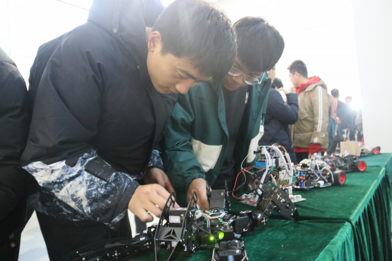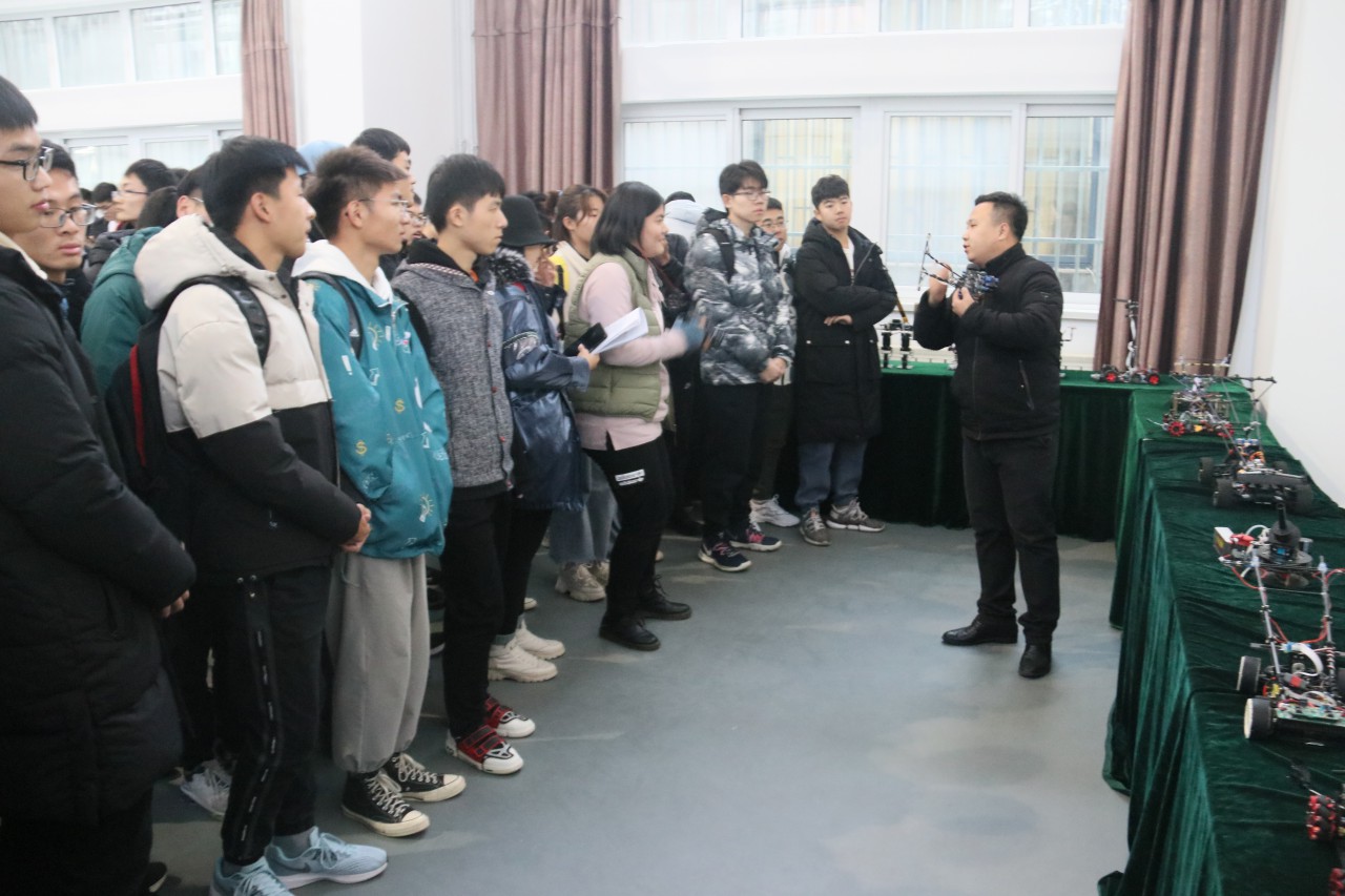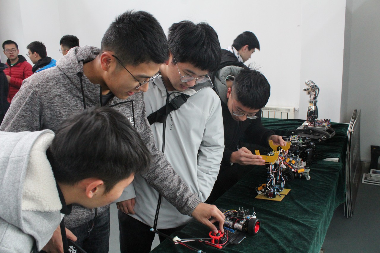 同学们依次参观了青岛智能无人系统创新研究院的户外移动作业机器人、自动分拣机器人,Robot Master战队的机甲战车,学院各年级参加科技创新竞赛研究制作的各类机器人、智能车等优秀作品。