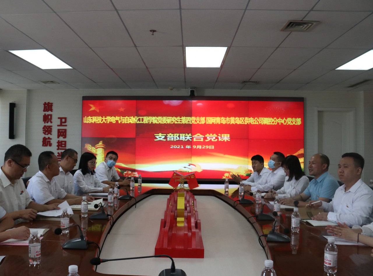签约仪式结束后,电气与自动化工程学院党委研究生第四党支部与国网青岛市黄岛区供电公司电力调度控制分中心党支部全体党员同上一节党课。山东科技大学马克思主义学院孙绪民教授受邀做题为《弘扬伟大建党精神,担当民族复兴大任——学习习近平总书记在庆祝中国共产党成立100周年大会上的讲话》专题报告。