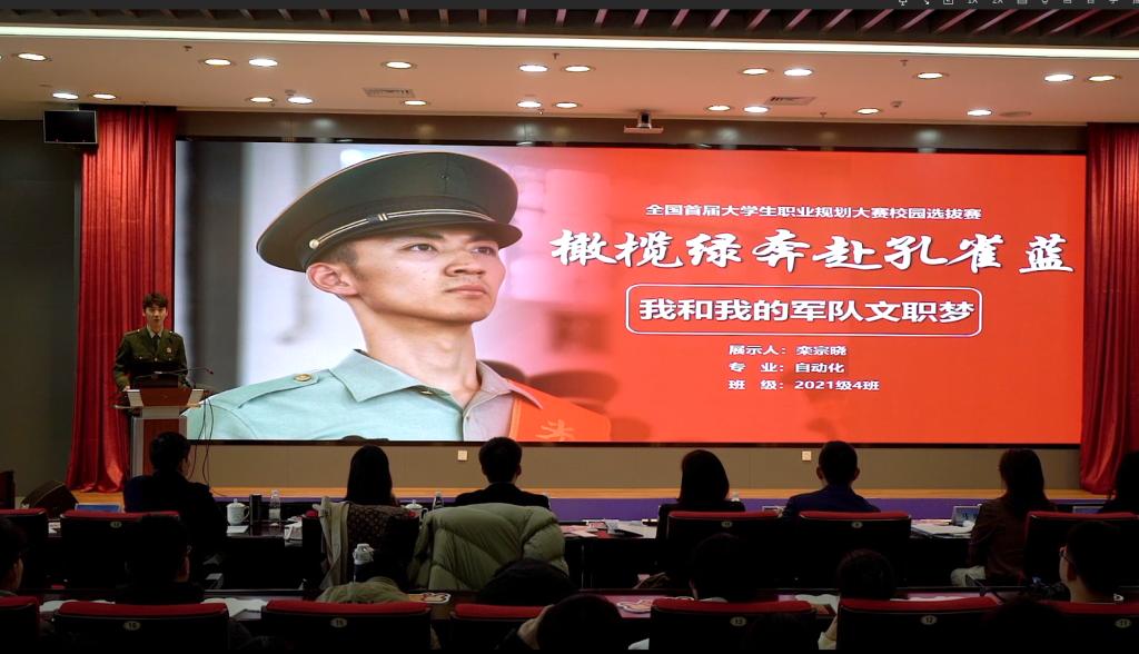 大赛以“筑梦青春志在四方,规划启航职引未来”为主题,设置成长赛道和就业赛道。经过宣传发动,全校共有5500余名同学报名参赛,经学院和学校初赛,40名选手进入学校复赛。经校内外专家评委现场和函评评审,来自3个校区12个学院(系)的17名选手进入学校校园选拔赛决赛。决赛现场分为主题陈述、评委提问(综合面试)、天降offer三个环节,选手们从自我认知、职业探索、职业定位和成长路径等方面讲述了自己的生涯规划与实践历程,展现了良好的综合素质和求职实战能力。