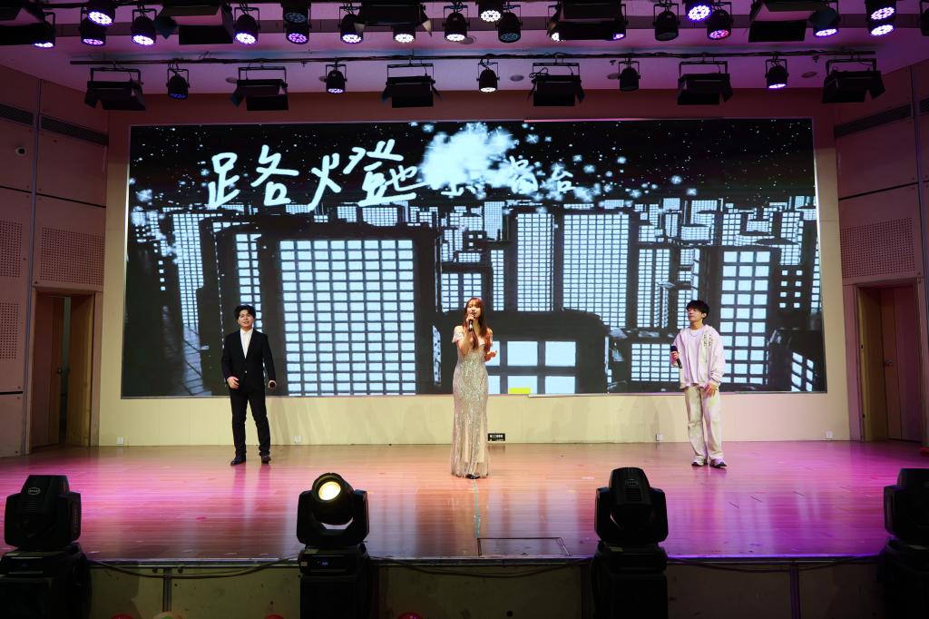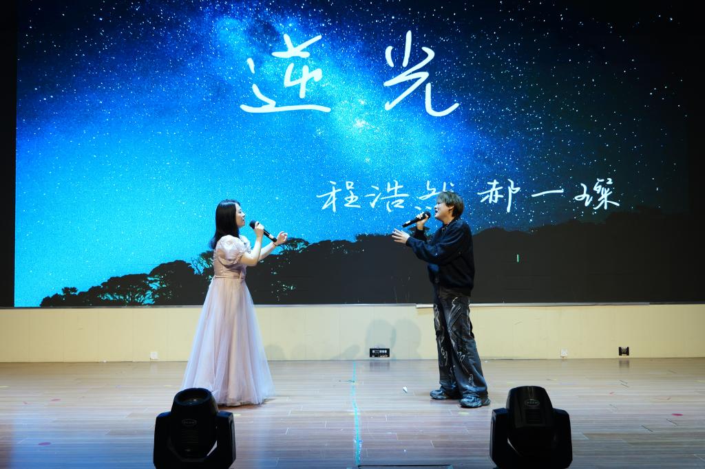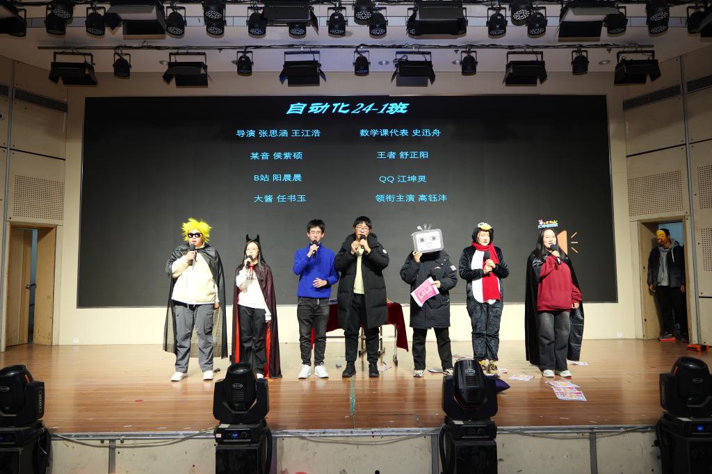 在这辞旧迎新的美好时刻,一首充满激情的歌曲《海芋恋》,拉开了整场晚会的序幕,热血激昂的歌声配合台下铿锵有力的呐喊,瞬间点燃全场。接下来的快板《奇袭白虎团》更是将气氛推向了高潮。小品《小学生作文》、舞台剧《一荤一素》、歌曲《世界上的另一个我》、魔术《凤凰于飞》引得大家连连欢呼,在Rap《若月亮没来》节目中,学生们用话语说出少年的节拍,用歌声唱响美好的未来,尽情地展示自我、弘扬个性。2024届优秀研究生毕业生程浩然演唱的歌曲《逆光》赢得了全场师生的热烈掌声与共鸣。紧接着,小品《时间都去哪儿了》和舞蹈、歌曲串烧,将自动化学子的青春活力、多才多艺展现的淋漓尽致。