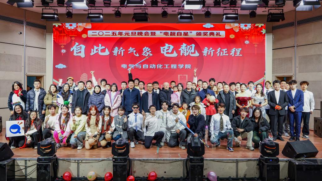 祥龙回首辞旧岁,金蛇起舞迎新年。为庆祝即将到来的2025年元旦佳节,丰富校园文化生活,12月21日晚,自动化学院在大学生活动中心举办了2025年元旦晚会暨“电靓自星”颁奖典礼。学院党委副书记兼副院长赵洋、院长助理盛春阳、电工电子中心主任吕常智、自动化系主任隋涛、学工办主任(团委书记)杨洪骞及全体辅导员参加晚会,与学生欢聚一堂,喜迎新年。