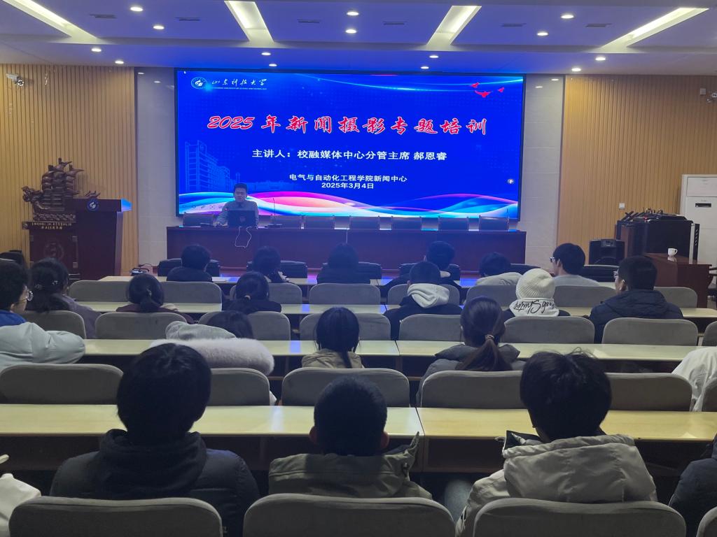 3月4日下午,自动化学院于J11泰山报告厅开展新闻摄影专题培训活动。本次活动以讲座宣讲形式进行,聚焦新闻摄影基础理论与实战技巧,学院新闻中心全体成员、学生会及研究生会等学生组织宣传骨干参与学习。校融媒体中心分管主席、自动化专业2022级学生郝恩睿担任主讲,结合自身丰富的拍摄经验,为学员们带来了一场深入浅出的专业培训。