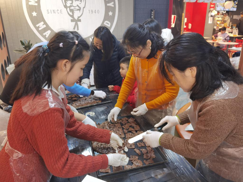 经过两小时精心制作,展示台上整齐摆放着30余件作品:缀满花团的水果蛋糕、金黄松软的纸杯蛋糕、萌趣十足的巧克力饼干......活动尾声,各类甜品被分装成“爱心礼包”,分发到每位女教职工手中。