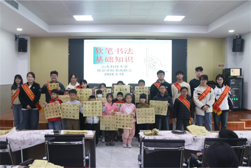 3月15日下午,山东科技大学书法协会联合电信学院志愿者走进金榜社区,为社区内小学生开展了一场生动的书法文化实践活动。通过“讲典故、练技法、创作品”三阶教学,让孩子们在笔墨浸润中感受传统文化魅力。