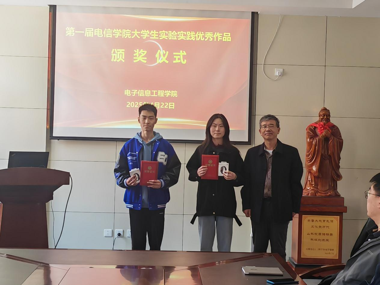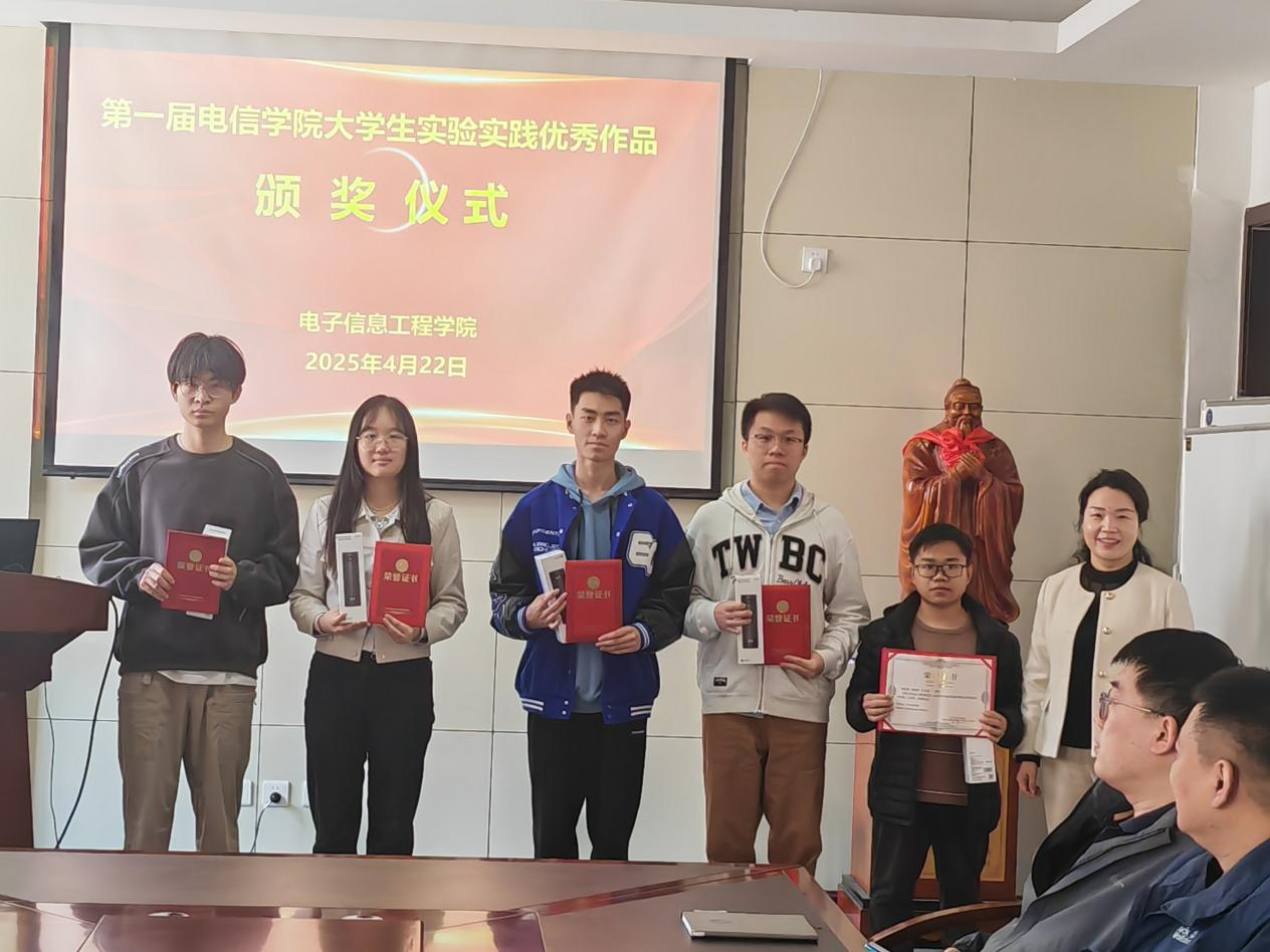 会议同期举行了学院首届大学生实验实践优秀作品的颁奖仪式。本次大学生实验实践优秀作品评选活动于2024年底启动,经过学生提交作品、专家评审、学院审核等环节,共评选出一等奖2项、二等奖5项、三等奖7项。徐玲平、范迪、陆翔分别为一、二、三等奖的获奖同学颁发证书及奖品。徐玲平书记勉励获奖学生多参加实践和创新活动,增强实践动手能力,努力成长为对国家社会有用的人。