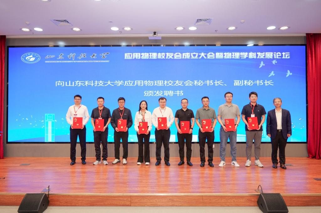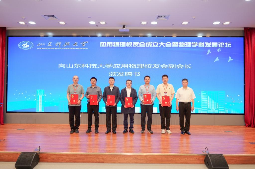 2025年5月17日,山东科技大学应用物理校友会成立大会暨物理学科发展论坛在图书信息中心求新讲堂隆重举行。副校长诸葛福民于会前会见杰出校友代表。山东科技大学校友总会会长姚庆国教授,校友总会副会长兼秘书长、合作发展处处长王晓东,合作发展处副处长王荣超、化工学院党委书记窦存增、经管学院党委书记庄兴华,基建处副处长聂西文、韩庆防,电信学院党委书记徐玲平、党委副书记兼副院长陈冰、副院长范迪,应用物理学专业历届校友代表、退休教师代表、在校师生代表等100余人出席大会。大会第一阶段由应用物理系主任陈兵主持。