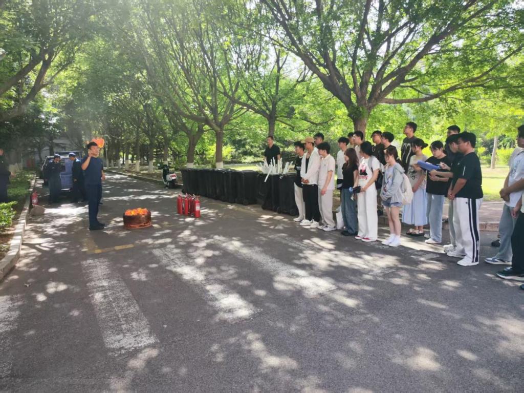 理论培训结束后,学校安管处消防科邵建华老师带领师生进行了消防演练。孙鹏队长现场演示了干粉灭火器的正确使用方法,并指导师生进行火源扑救。参与实操的师生纷纷表示,通过亲身体验,对灭火器的使用有了更加直观和深刻地认识。
