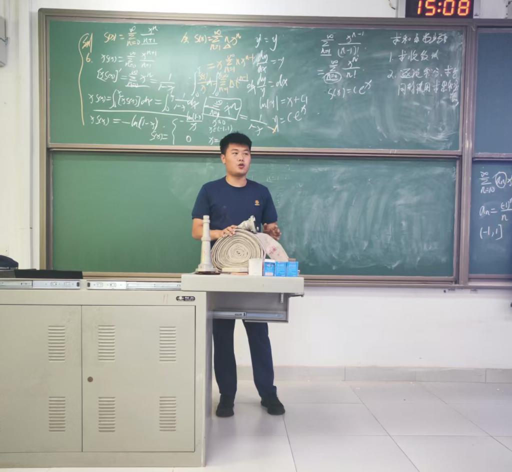 孙鹏队长以《校园消防安全与应急自救》为题展开专题报告。他结合生活中常见火灾典型案例,深入浅出地讲解了火灾隐患排查、初期火灾扑救、逃生自救技巧等核心知识。在报告中,孙队长特别强调了校园实验室、宿舍等区域用电安全的重要性,提醒师生定期检查线路、杜绝违规电器,并现场传授了“提拔握压”灭火器使用口诀。为增强报告的互动性和实效性,孙队长还通过视频还原真实火场场景,警示师生时刻绷紧安全弦。
