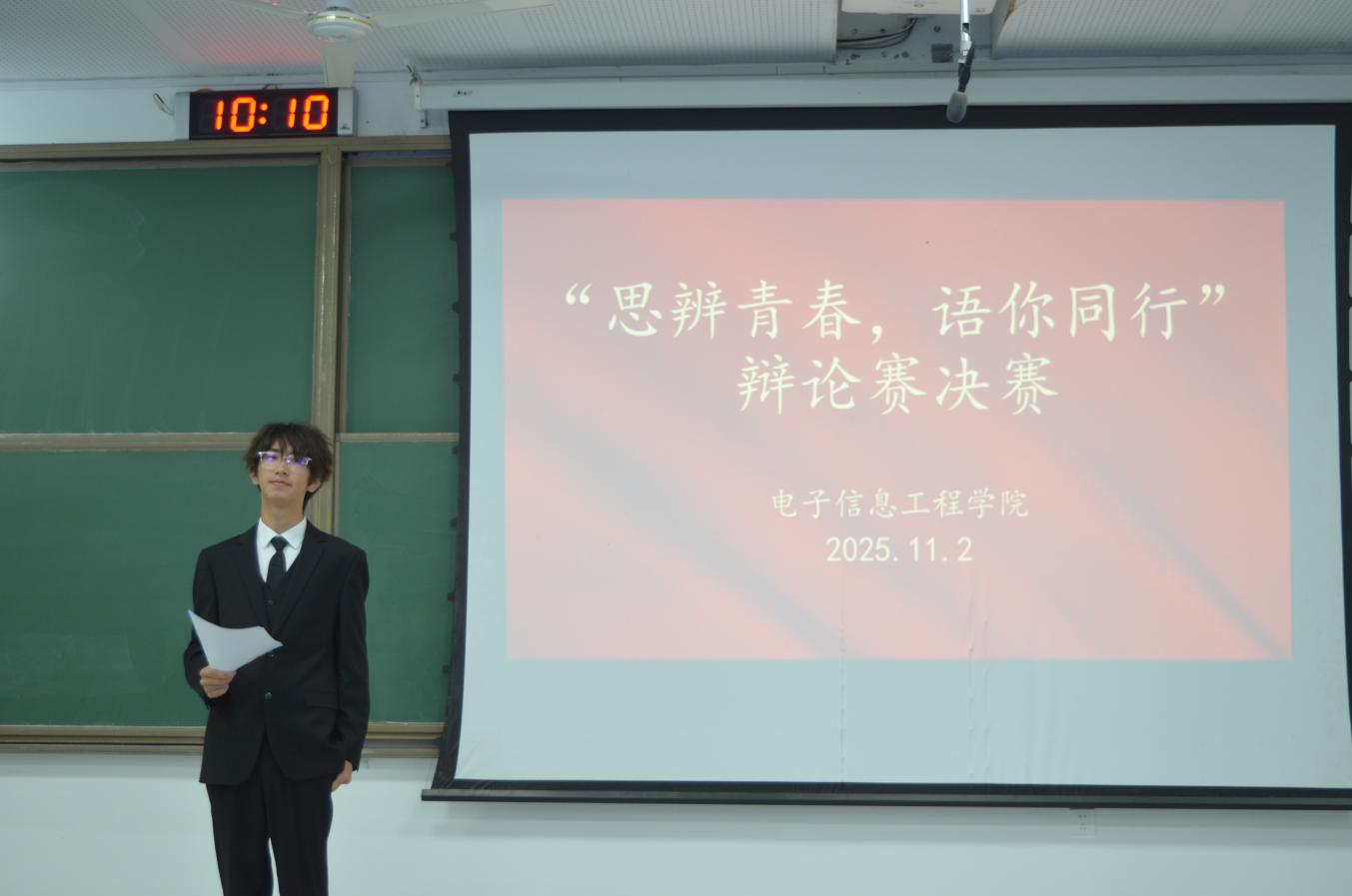 挥斥间惊雷乍起,论辩中暗藏玄机。11月2日,电信学院学生会办公室和电信学院辩论队联合举办我院“思辨青春,语你同行”辩论赛决赛。本次比赛双方辩手围绕“社交媒体让人与人的关系更亲密/更疏远”一辩题展开精彩辩论。 本次比赛由数学学院辩论队队长刘俊豪、地科学院辩论队队长郝帅、海洋学院辩论队队长黄楠担任评委。