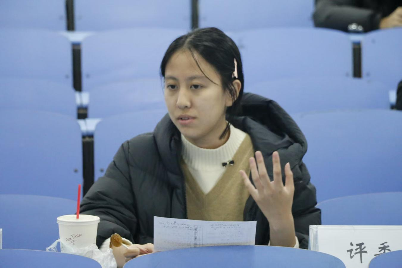 比赛于上午十点开始,正方选手为杨媛媛、栾鹄博、胡继儒、韩嘉乐;反方选手为侯润清、周泽宇、杨雯淇、李奕硕。比赛进行中,正反双方辩手围绕社交媒体“亲密感”的定义、辩题中“线上互动”与“线下联结”的权重,以及“情感传递”与“形式简化”的界限等核心议题,在攻防转换之间激烈交锋。最终,反方选手以15:12获得冠军,反方二辩周泽宇荣获最佳辩手称号。评委们凭借深厚专业积淀剖析赛场交锋,既对双方的精妙逻辑予以精准捕捉,亦对论证过程中的疏漏之处进行犀利点拨,他们的每一句点评,都化作了滋养思维、启迪智慧的生动课堂。