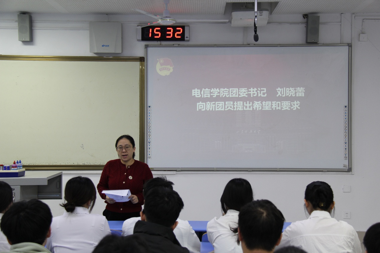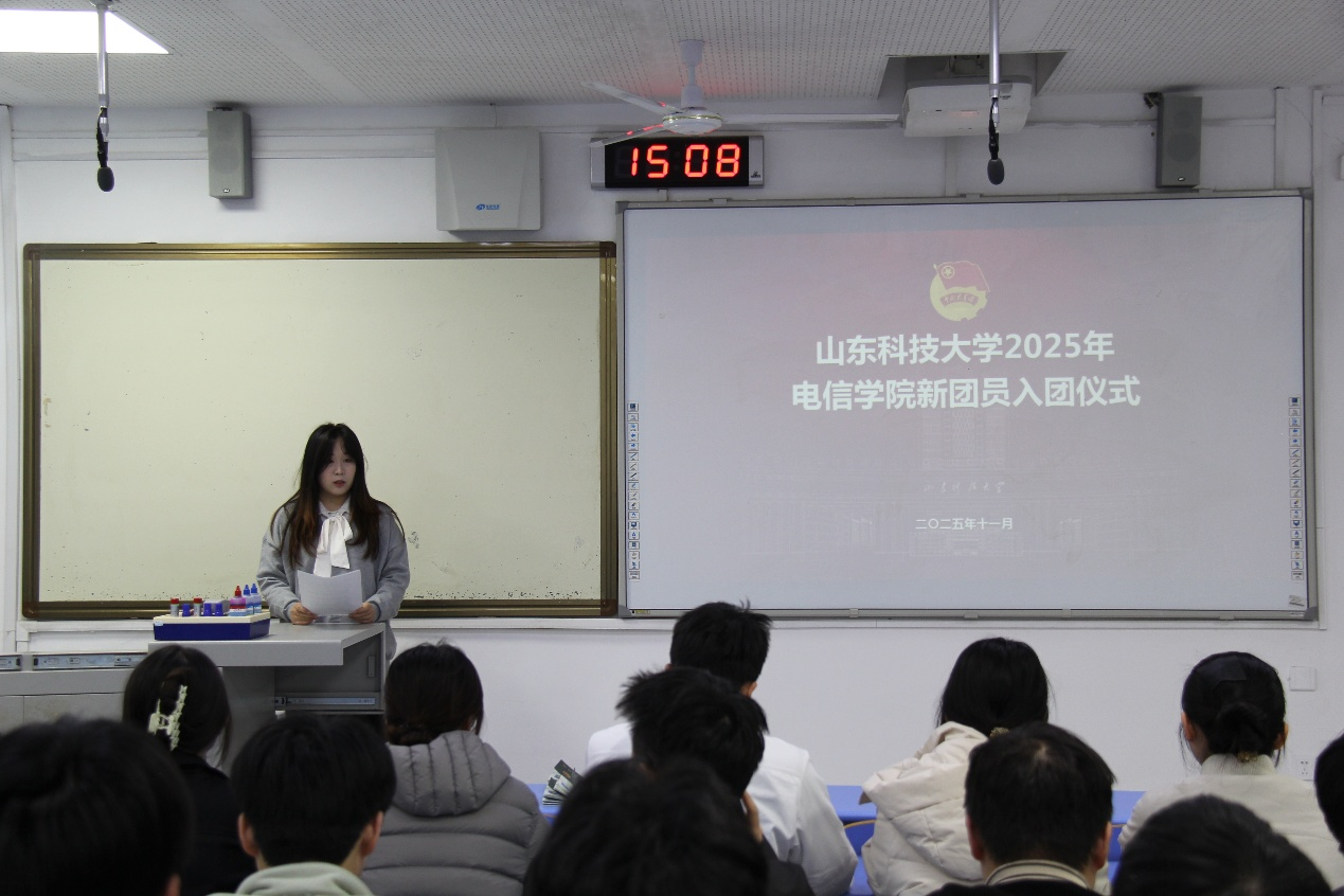 11月11日下午,电信学院在J7-112教室举行2025年下半年新团员入团仪式。学院团委书记刘晓蕾及全体辅导员出席仪式,25名新发展团员与优秀团员代表共同参与这一庄严时刻。仪式由团员代表刘一诺主持。