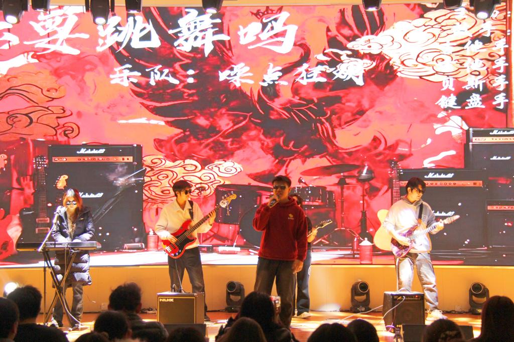 晚会在噪点狂欢乐队《你要跳舞吗》的活力旋律中正式启幕,明快的节奏迅速点燃现场氛围。歌曲《被风吹过的夏天》婉转悠扬;THE SAD乐队的《王妃》激情澎湃;独舞《彩云之南》柔美灵动,充满民族韵味;NOB街舞社的《战舞林》和《Dangerous》飒爽有力、迸发青春活力;数学学院舞蹈队助力晚会现场。此外,奇幻魔术表演引发全场惊呼;情景剧《谁杀死了周日》贴合校园生活,引发师生共鸣;校大艺团礼模队《鎏金夜宴》走秀优雅大气,听歌识曲互动环节进一步活跃了现场氛围。