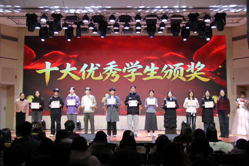 表彰环节中,学院领导与辅导员为2025年度十佳学生、就业之星、优秀团体颁发荣誉证书,彰显榜样力量。