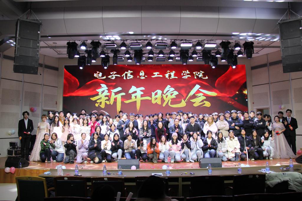 辞旧迎新启华章,青春聚力谱新篇。1月7日,山东科技大学电子信息工程学院“‘芯’辰大海,‘光’耀新知”2026年新年晚会在大学生活动中心二楼报告厅顺利举行。电信学院党委副书记兼副院长陈冰,学工办主任、团委书记刘晓蕾及全体辅导员与同学们欢聚一堂,以文艺汇演辞旧迎新,共赴青春文化盛宴。