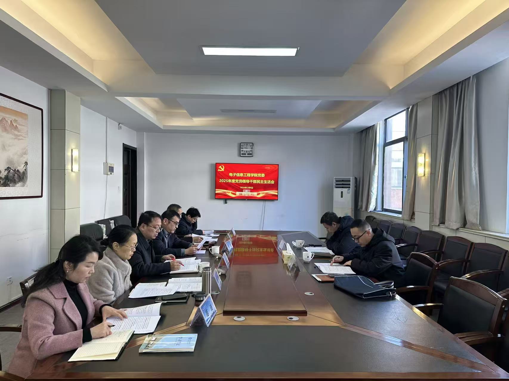 2月8日,电子信息工程学院党委召开2025年度党员领导干部民主生活会,校党委常委、副校长陈绍杰,校纪检监察室主任边炳到会指导。电子信息工程学院党委领导班子成员参加会议,会议由学院党委书记马海超主持。