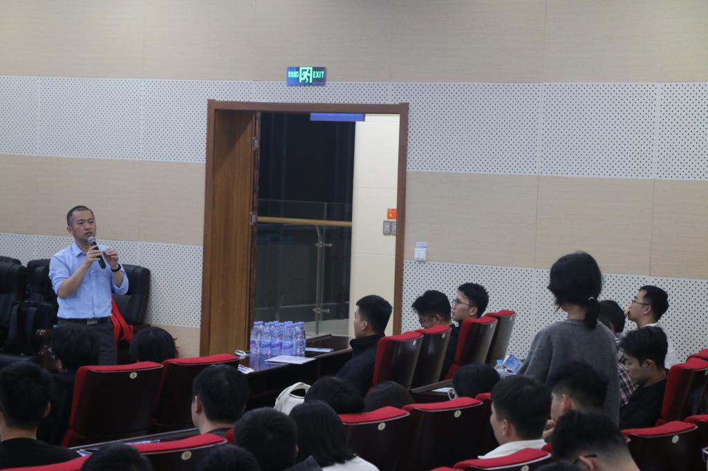 随后,前几届入职的学长们分享了自己在宇视科技的工作、生活以及求职经验,鼓励同学们保持积极的心态,多做尝试。最后,在互动问答环节,陈立辉及各位学长针对同学们关心的岗位申请、岗位晋升和职业前景等问题进行了详细解答,为同学们提供专业的建议和指导。