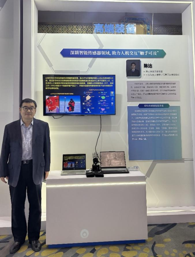 10月28日,第三届山东人才创新发展大会暨第十三届“海洽会”人才引领发展成果展在济南盛大开幕,省委省市及科技厅、教育厅领导、高层次人才代表和多家媒体嘉宾观展。大会遴选了全省40个高层次人才取得的科研创新成果参展,山东科技大学电子信息工程学院团队研发的柔性传感器智能手套惊艳亮相,吸引了众多目光。