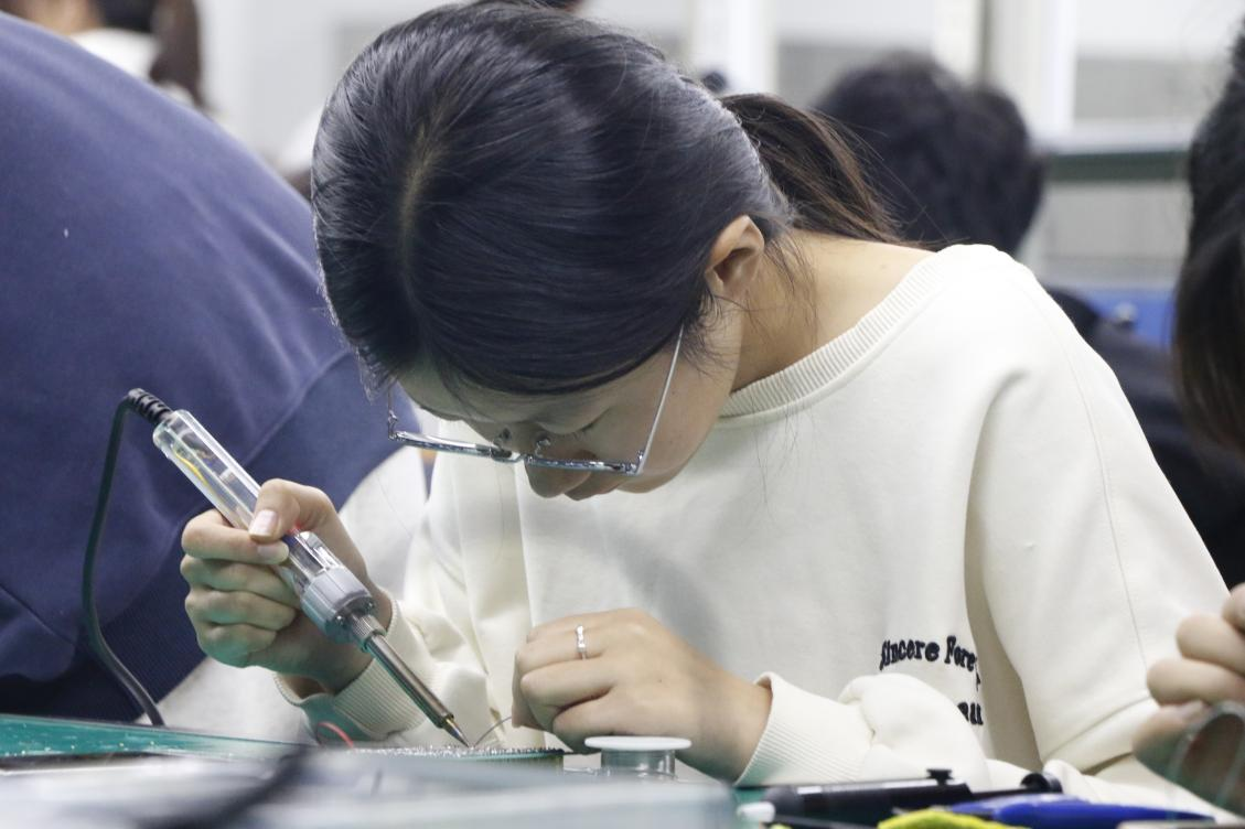 为培养大学生科技创新意识,提高实践动手能力,11月23日至24日,电信学院学生会科创部在工程实训中心610实验室举办焊接大赛。