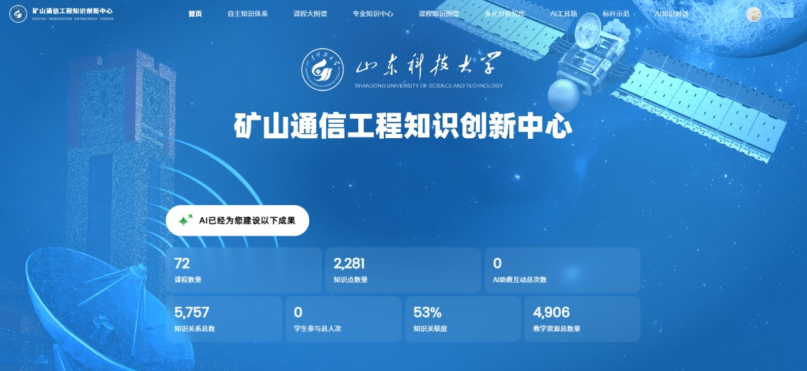 该专业知识创新中心是学校全面落实教育部人工智能赋能教育行动部署,专项建设的行业特色教育专有大模型垂直应用范例。团队依托山东科技大学七十年矿山行业人才培养经验、信息与通信工程重点学科与通信工程国家一流专业,对学科知识体系和人才培养要求进行了全面深入的梳理和优化,建立了矿山通信知识图谱和专有大模型智能体。主体框架包括通信工程专业本科和信息与通信工程学科研究生阶段的23门专业核心课程及《矿山应急通信》等20余项行业特色课程与工程实践项目,其中国家级一流课程3门,省级一流课程5门,覆盖了矿山通信领域约2500个核心知识点和4906项教学资源,使学科知识逻辑更加清晰,教学体系更加完整立体。