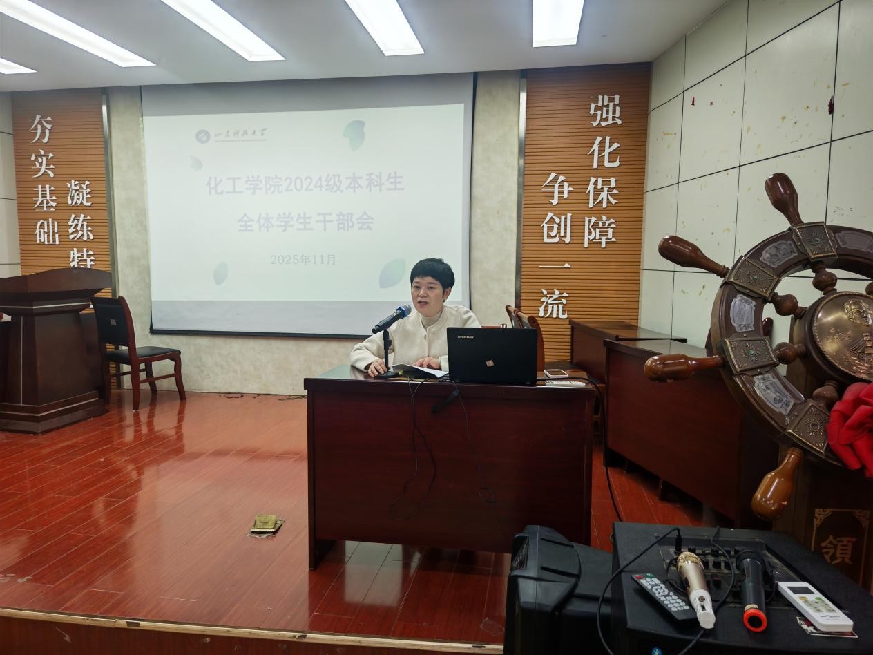 为加强学生干部队伍建设,提升学生骨干的综合素质与服务能力,114日,化工学院在学院报告厅组织召开2024级本科生全体学生干部会议。学院党委副书记兼副院长田静出席会议并作讲话,2024级辅导员满灏和郝俊英分别开展专题培训。大二年级全体学生干部参与本次会议。