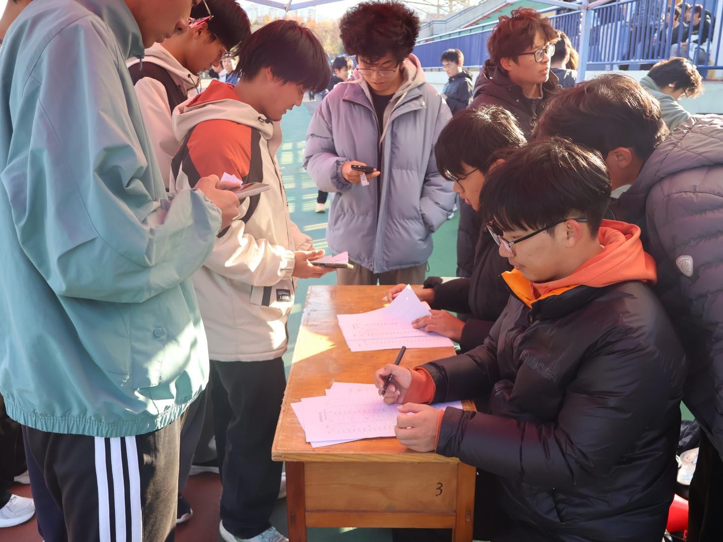 下午2时整,赛事正式拉开帷幕。各班级代表队精神抖擞,整齐列队,在专业热身指导后进入备战状态。发令枪响,运动员如离弦之箭奋勇出发,在深秋的赛道上挥洒青春汗水,展现出化工学子昂扬向上的精神风貌。为确保赛事专业有序进行,学院在赛道关键节点设置了补给站与引导点。由学生会骨干和志愿者组成的服务团队恪尽职守,为选手提供周密保障与专业支持,充分彰显了学院团结协作的组织文化。