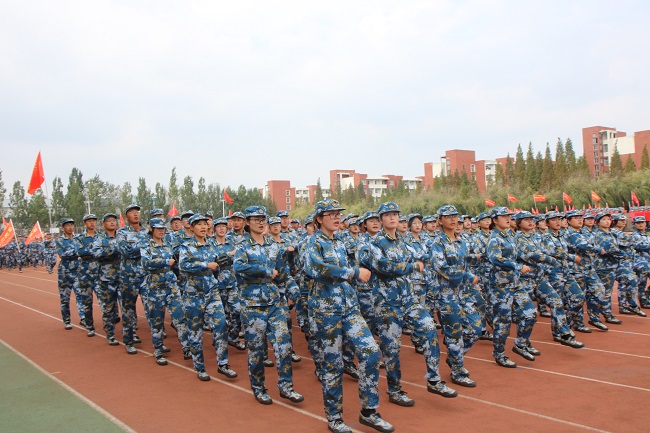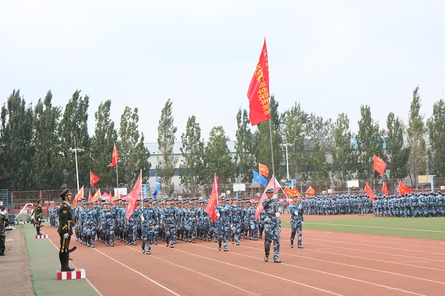 9月17日下午,山东科技大学2021级新生军训闭训仪式在风雨操场举行。化工学子着迷彩服,佩戴校徽,以磅礴朝气、军人的英姿,接受学校的检阅。